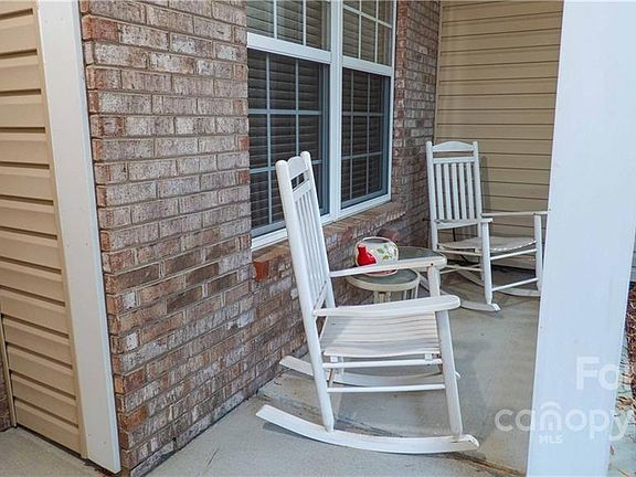 Highly sought after townhome in Rocky River Crossing community of Harrisburg! This 2 bedroom 2 bath ranch townhome has a great location with a tree lined back property line and no through traffic. The rocking chair front porch is a must have in this intimate townhome section of the larger Rocky River Crossing neighborhood. This home features an open floor plan with kitchen island/breakfast bar open to the Great Room with soaring ceilings and gas log fireplace. The Owner's Suite includes a walk in closet and bath with separate garden tub and shower, and dual vanities. A convenient office/home management room off the kitchen leads to the laundry room with cabinet and shelves. The highlight of this home is the screened in back porch with new vinyl plank flooring, and plexiglass window inserts so that you can enjoy your view and sightings of deer and birds all year long. Or venture outside and enjoy the large stamped concrete patio. $5000 Flooring allowance with acceptable offer.