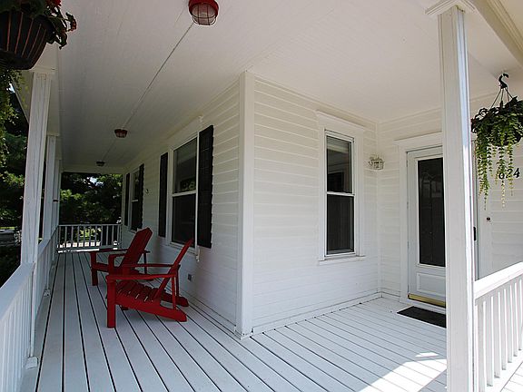 Beautiful, well maintained 4 bedrooms, 1 1/2 bath home, holds timeless charm with modern updates! Features include spacious rooms on main and upper floors. Kitchen with abundance of cabinets, tile floor, pantry and eat-in area. In addition, main level offers large living room with corn/pellet burning fireplace, separate dining room and bedroom with wood flooring and two closets. Upper level includes; 3 bedrooms, 1/2 bath and office/game room. All bedrooms have 2 closets. Additional features include covered, "L" shaped front deck, back deck, front entry, enclosed side porch, adorable barn type chicken coop, and central A/C. Garages include 20x28 two car and a single car garage. Loft in single car garage is a great space for teens. It is wired for electricity and air conditioning. So many charming features, it's a must see to appreciate.