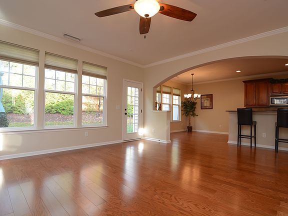 Psst...don't tell anyone this expansive end unit town home is listed $12K under tax value. Brand new hardwoods thru out main invite you. Imagine preparing food over your spacious granite counter tops & serving guests at the raised bar seating or in the open dining area. Tiled back splash & custom trim thru out. Owner retreat flaunts 2 walk in closets, sep tub & dual vanity. Secondary BRs are generous in size. Main flr guest BDRM/office & finished 3rd flr. Patio & 2 storage rms. Acc. to walking trails/pool