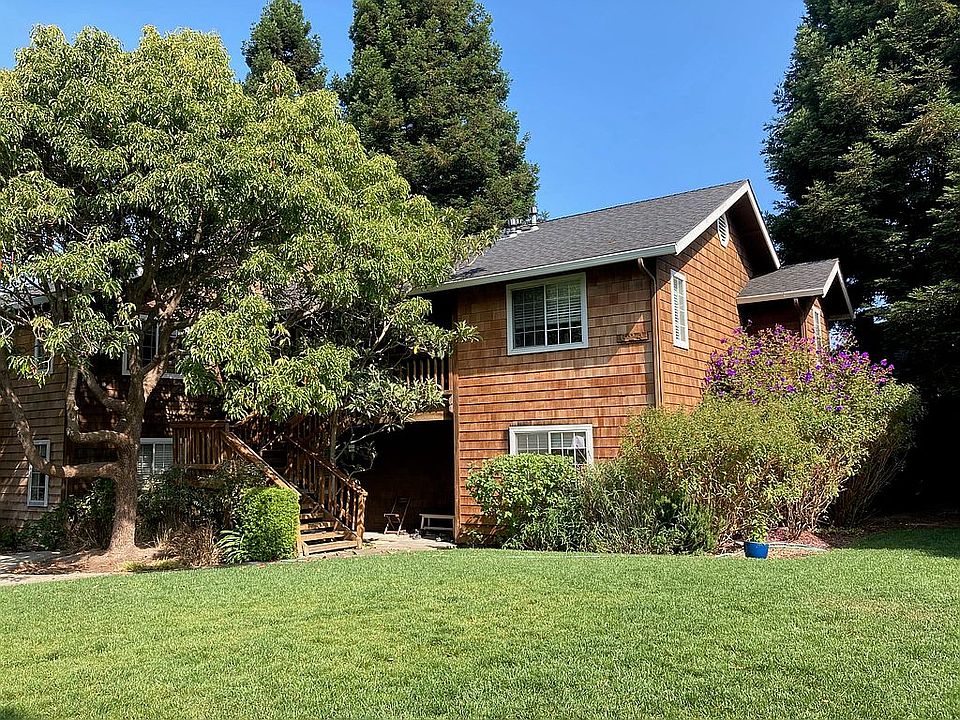Exclusive gated access to a park-like setting. Lovely community space. Beautiful Brown shingle, light-filled top level unit. 3 Bedrooms /1 bath, bamboo floors, stone counters, stainless steel appliances. Gas stove & refrigerator, in-unit laundry, central heating, French doors to private deck. Huge attic for storage, and two parking spaces. A few blocks to College Ave. shopping, Whole Foods, Berkeley Bowl, and BART