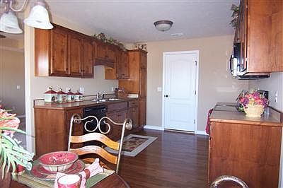 Quality Bussell built 4 BR/2 BA/3 car garage home offers spacious living room, kitchen with custom knotty alder cabinets, wood wrapped laminate countertops, Whirlpool black appliances including solid surface stove and pantry. Rich hardwood floors throughout kitchen and dining area add warmth and elegance. Master suite includes spacious bedroom and bath with 4' walk-in shower. Home is energy efficient with 13 SEER A/C unit and 80% efficiency heat. Exterior features include a patio or deck and sodded and landscaped front yard. You will not find a better value than this!