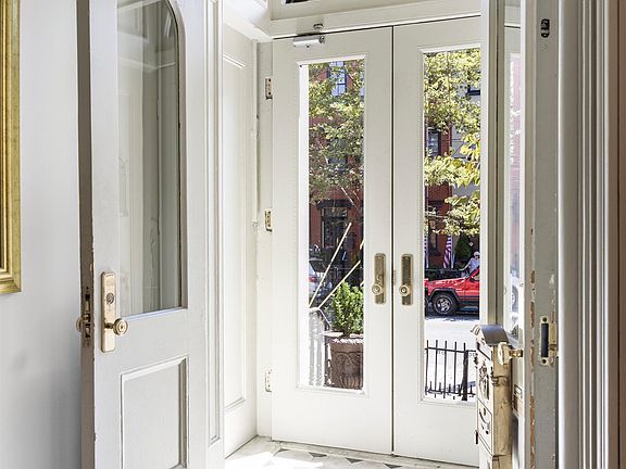 624 Bloomfield Street is a rare and important property, a piece of Hoboken history that is comprised of two distinct buildings connected by a brick breezeway encompassing a lovely courtyard garden located on an oversized lot that provides parking in a prime midtown Bloomfield Street location. The oversized 31 x 100 ft lot consists of an exceptional 21’ wide four-story semi- attached townhouse featuring stunning four story copper clad projected bay windows on the front façade and a two-story bay window on the southern elevation that offers rare multiple exposures. The main townhouse is attached to a two-story carriage house towards the rear of the property and a single story bay garage with wicket door to the south providing both on and off street parking. The handsome circa 1850 townhouse incorporates elements of the Renaissance Revival, Neo-Grec and Italianate architectural styles. The gracious main entry is recessed and composed of a double leaf, wood and glass paneled door and round arched glass transom. The striking and distinguished formal double parlor floor has outstanding scale and proportion and retains its original Victorian grace with ornate plaster crown molding and casings. The parlor floor also offers a full bath featuring Lefroy Brooks fixtures and Ann Sacks tile and a lovely sunroom area that floods the area with light. As you walk through the brick breezeway you pass large historic steel French casement windows that open to lovely views of the inner courtyard. Upon entering the carriage house you are seamlessly transported through time to a less formal but equally impressive living experience nestled in trees and surrounded with four exposures that allow an abundance of light while enjoying privacy not typically found in urban living. The two-story carriage house sits on the entire rear width of the lot and has large open living and dining areas that are ideal for informal entertaining and boasts a well-equipped gourmet kitchen featuring green slate counters and backsplash, and a Shaws Lancaster farmhouse sink with Nicolazzi faucet. The first floor of the carriage house has another cozy living room a bedroom, an office that can be easily used as a bedroom and a full bathroom with a Steam Bath, Lefroy Brooks fixtures, Sbordoni by DaVinciClassic pedestal Sinks and Ann Sacks Gramercy Park Tile. The ground floor of the carriage house opens to the brick inner courtyard, which was previously featured in the Hoboken Secret Garden Tour and has many mature plantings including a classic rose garden, a lilac and white dogwood tree. The delightful single story garage with wicket door doubles as a gardening shed and is a perfect entrance and complement to the secret inner courtyard garden. The driveway of the home offers parking and Hoboken permits you to block your own driveway allowing for up to three-car parking. 624 has two zones of air conditioning, four zones of radiator heat and is currently configured as a four family. The property will be delivered vacant and can easily be converted to a one or two family home. The top two floors and garden level of the townhouse were previously rented and have kitchens. This historic one of a kind residence is conveniently located one short block from Washington Street, boutique shops, restaurants, and the express bus to Port Authority, and a short distance to many parks, the Path train and NY Waterway Ferry.