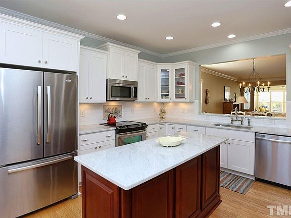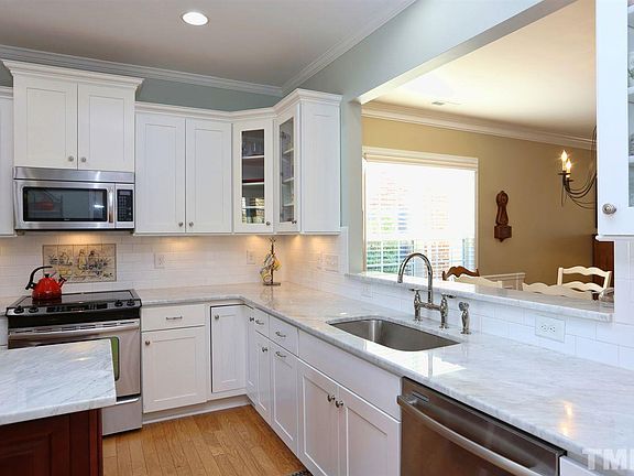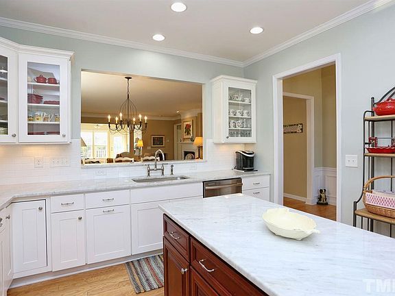 Don't miss out on this rare designer customized home on one of the best lots in Carolina Preserve. Kitchen boasts numerous upgrades -custom white staggered height shaker cabinets with select glass inserts & pull out shelves, Carrara marble countertops, tile backsplash, large center island, pull out trash drawer and spice rack. Open floorplan looks over large fenced in backyard. Tile bathrooms and Hardwoods throughout. Plantation shutters, custom molding, antiqued brick patio with sitting walls.