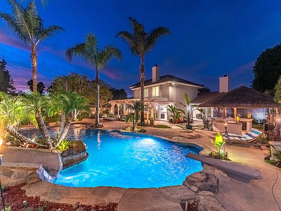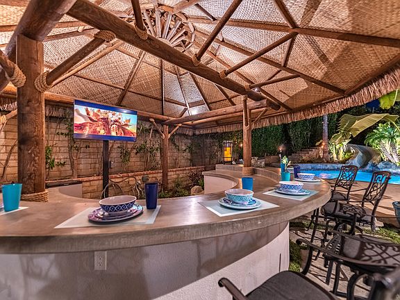 Paradise is for sale! This is a MUST SEE beautifully upgraded 5BR, 3BA (+ bonus room) home in the highly desired Coventry Ridge Estates neighborhood with access to horse trails/arenas. Inside boasts a large, entertainer's dream kitchen with custom cabinets, dual marble islands with waterfall counters, upgraded fixtures, Viking range and dishwasher, Thermador fridge, microwave drawer, trash compactor, and adjacent formal dining area with custom built-in, back-lit, wine display wall. 1BR/1BA downstairs, with open-concept formal living area, family room, and 2 downstairs fireplaces. Most windows and doors throughout the home have custom plantation shutters, and lighted ceiling fans in all bedrooms. Master BR/BA has a dual-sided fireplace, vaulted ceilings, custom cabinet walk-in closet, and overlooks backyard oasis. There are also 3 spacious bedrooms upstairs, 1 with bonus play area. Outside boasts a private resort-style back yard with sparkling pool, waterslide, fire pit, HUGE custom palapa bar, large grassy play area, and RV access! Home was recently painted and professionally landscaped- too much to list, please come see this one of a kind property to appreciate all it has to offer!