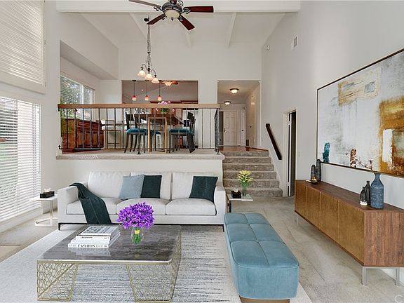 Fantastic purchase opportunity on this rarely available end unit home in popular gated community of "Fairway Village". Spacious 2 br + Den (Could be 3rd bedroom or office. Room has space to install closet doors). Nearly single level, only 6 steps. Fresh interior walls painted with neutral designer color, tile roof, double door entry, laminate floors in entry through kitchen, tiled floors in bathrooms, atrium, remodeled kitchen with newer cabinets, recessed lights, granite countertops, stainless steel appliances & pendant lights, formal dining room, vaulted ceilings, open and bright living room with fireplace and sliding doors to patio, master bedroom with vaulted ceiling, walk-in closet, sliding door to patio, master bath upgraded with dual sink vanity and tile works, ceiling fans throughoutl, forced air heating and central air, 2 car direct access garage with automatic opener, huge wood lattice patio area for entertaining and pleasant views of the greenbelt. Don't miss out!!!