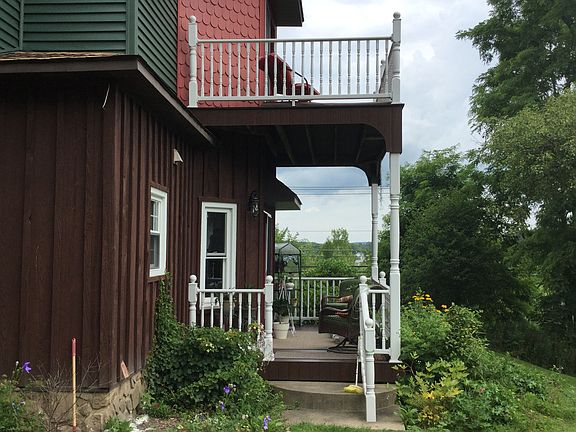 For Sale: Beautiful home surrounded by lush greenery on 3/4 of an acre lot. Move in ready with endless opportunities in this 4 bedroom, 2 1/2 baths with one being a completely renovated handicap bath/ laundry room. Solid original oak flooring. Appliances included- with new updated kitchen, new built in range, new windows, 2 new decks, new carpet in bedroom, hallway, and stairs. Central air, gas forced air, & wood burner. Possibility of home based business. Spacious 2 stall dream garage with 700 sq. ft. 2nd. Floor workshop. Reasonable offers will not be refused!!