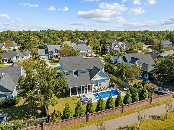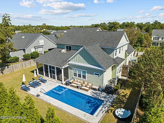 This home has it all! Fantastic location - walk, bike, or drive to Mayfaire in less than a mile or just a few miles to Wrightsville Beach! Custom built in 2018 in the Wrightsville Beach Elementary school district, this 4,300+ interior square foot property has all the extra amenities today's buyers are looking for - dedicated home office, phone app controlled in-ground heated saltwater pool and hot tub with night lighting, expansive pool deck for relaxing, spacious screened porch (Sonos audio speakers, SunBrite TV, and beautiful matching sofa and dining set), outdoor shower with pergola top, and home gym! The main living area is completely open with a gorgeous kitchen (quartz countertops, top of the line stainless steel appliances including a wine fridge, gas cooktop, range hood, double oven, and double door refrigerator and freezer), a huge island with custom cabinets, double farm sink with Culligan reverse osmosis system, and stunning finished wood bar top, generous dining area, and a picture perfect living room with an 82 inch TV mounted on a shiplap wall over a gas fireplace surrounded by white brick! Incredible 4 panel telescoping sliding glass doors to the screened porch create the ultimate indoor-outdoor living experience! The first floor master suite is a dream with a tray ceiling in the bedroom and a massive bathroom with a Jacuzzi tub, double vanities, walk-in shower with rain head and/or hand held shower options, and amazing custom walk-in closet. Finishing off downstairs you will find a huge laundry room, custom Drop Zone, and half bath with shiplap walls and wood ceiling. On the second level, there is a massive family room with a home gym and second home office space, 3 more large bedrooms, 2 more bathrooms, tons of storage space, and a sunset deck! Hardwood and tile flooring throughout both levels.