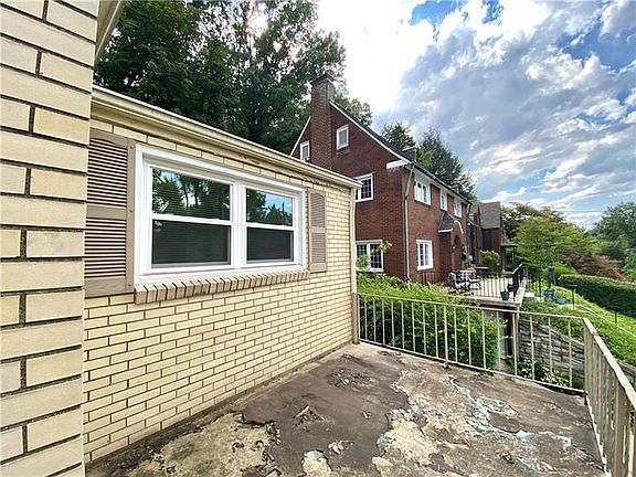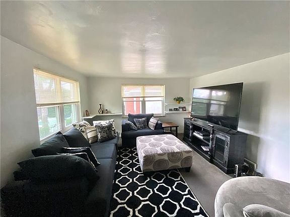 Spacious two bedroom brick ranch on a nice tree-lined street. Large room sizes, two full baths, a finished basement plus huge laundry room. The kitchen is well equipped with fridge, electric stove, disposal, dishwasher, microwave, ceramic tile flooring, double sinks, pantry and tons of space for a big dining table! Kitchen door leads out to the 152' deep lot which goes very far back into the woods behind the house and levels out up top. Just needs to be cleared! To the right of the front door is a large patio looking out over the front yard. Ample parking with room for 4 vehicles--1 car integral garage plus room for 2 more in the driveway and 1 more in parking pad out front.