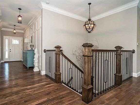 You will be wowed the moment you pull into the drive! Beautiful custom built split bedroom ranch with 3 car garage and brick & stone front. Custom molding throughout, hardwood floors, 9ft ceilings, wood burning fireplace with stone surround, 5 panel doors, built in speakers, and the list goes on & on! The Kitchen features hardwood floors, granite counters, 10ft island with breakfast bar, stainless steel appliances, & walk-in pantry with built-in microwave. The Master Suite has double vanities, separate tub & shower with tile surround, & a walk-in closet. The secondary bedrooms feature a Jack-and-Jill Bathroom and a guest Powder Room located off the Great Room. The main floor Laundry features a laundry folding counter, built-in laundry sorting system, and cubbies in the family entry! The lower level is ready for your finishing touches! Enjoy your evenings outside on the covered back patio with a fan and built in speakers. This 4 year old home has everything you are looking for!