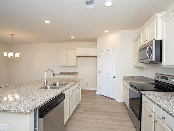 Additional space for family, guests, crafts, or hobbies! This is the Cali plan: an open 4 bedroom, 2 bath ranch. Wood-look floating floor is a low-maintenance alternative to hardwood, and is located throughout the home, including wet areas (carpet in the bedrooms). The spacious kitchen offers 36” staggered maple cabinets, an amazing walk-in corner pantry, granite countertops and island with breakfast bar, and stainless appliances - all standard! Sliding doors off the dining area lead to the 8 x 11 covered porch overlooking a huge lot! *Photos are of actual home for sale and of a furnished Cali model home. Home and community information, including pricing, included features, terms, availability and amenities, are subject to change and prior sale at any time without notice or obligation. Square footages are approximate. Pictures, photographs, colors, features, and sizes are for illustration purposes only and will vary from the homes as built. Equal housing opportunity builder.