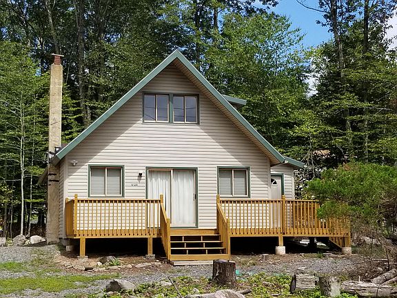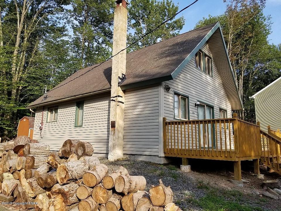 Impeccable! 3 bed 2 bath chalet style home. Hardely used one year old Stainless Steel appliances including dishwasher. Newer one year old floors! Nice wood burning stove for those Poconos chilly winters. Saves on heating bill! Gorgeous bathroom walls and floors. Small foyer area to hang clothes and take off shoes. Huge Utility Shed in backyard. There is a washer dryer hookup for stackables.