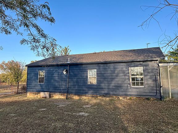 Newly remodeled 2 bedroom 1 bath (has a office/flex space that could be used as a small third bedroom) New roof installed October 2024, new plumbing throughout, new waterproof flooring, new electric hot water tank, upgraded to 200 amp service, and central heat/air. Sits on 5 peaceful lots on the edge of town. Move in ready and should qualify for 0% down USDA loan. Large storm shelter on back patio area. Please provide prequalification to schedule showing.