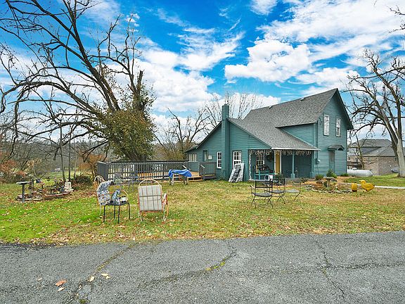 Location... Location...Location!!!1 acre in the heart of Ozark. Beautiful farmhouse looks out ontopasture and Finley River Park, walking trails, kayaking, canoeing, picnicking and events throughout the year. Three blocks to the Johnny Morris restored Finley Mill with restaurants, coffee shop, farmers market and gardens. Home sits to the front of the property which allows room to build on the back of the land. Detached 2 car garage with new roof.. Large kitchen, living room, 3 bedrooms. Large deck on the side.Great location! Newly painted exterior and interior, new wood ceiling in downstairs bedroom, new windows in living room and 2 new in laundry, new light fixtures, new landscaping. Don't miss out on an opportunity to own an acre in Ozark in a great location! Build on the extra land and use the home for a vacation rental or make it your private estate! This beautiful historic home will be sold as-is.