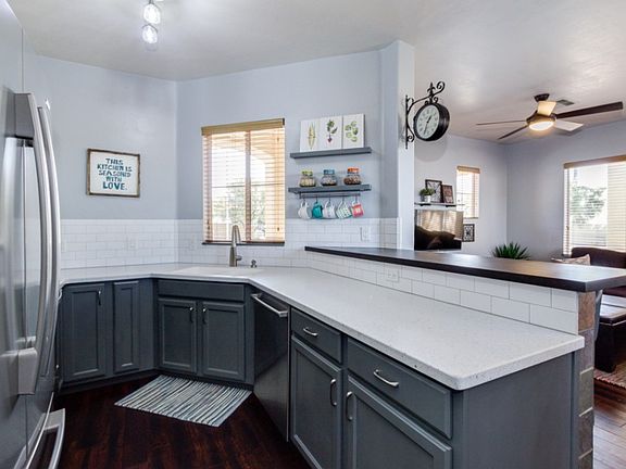 Check out this amazing remodel in Chandler! From the charming front porch, enter into a light, bright and open great room complete with gorgeous Acacia wood floors, tasteful paint, wood blinds and a breakfast bar overlooking the beautiful kitchen. You'll love both the grey and white cabinets, solid surface counters, subway tile backsplash and stainless appliances. The spacious Master suite features a remodeled bathroom with plank tile floors, new vanity, sinks, lighting and mirrors. The hall bathroom features a new vanity, sink, backsplash and mirror. The back yard is low maintenance with artificial turf and covered patio. Even better than all of that is the new roof (2018), new a/c (2014) and new water heater (2018). There's nothing more to do!
