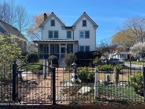 Nestled on a beautiful corner lot overlooking the Neuse River, this historic home is a breathtaking masterpiece of charm and elegance. With three bedrooms and 4 bathrooms, it provides ample space for a growing family or gracious entertaining. As you enter the home, you are greeted by a stunning entrance with marble floors and a dining room perfect for hosting dinner parties and family gatherings. Custom eat-in kitchen with quartz countertops, gas oven, stainless appliances, and gorgeous cabinets. You can choose to enjoy the river views from the screened porch or sunroom with wood burning fireplace. Large living room with 2 seating areas. Upstairs, there are 3 bedrooms each with ensuite baths. The master is on the back of the house with plantation shutters and 2 large closets. The third floor bonus room with built in bookcase is a peaceful sanctuary for reading or using your creativity. The home's charm and elegance are evident in every detail, with a pristine condition that speaks to the pride of ownership and meticulous care that have gone into maintaining it over the years. From the hardwood floors to the copper gutters, professional landscaping every detail reflects the home's unique personality and rich history. Off street parking with a two car garage. Finished space above the garage ready for your next project. Overall, this historic home is a true gem waiting for the next lucky owner to make it their own!