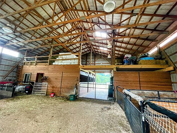 SERENE & TRANQUIL HORSE LOVER'S DREAM W/PRIVACY GALORE! All livestock permitted. 3,600 SF barn built 2008 w/four Stalls, pendant lights, finished office, hay loft, water, phone, electric, heat. RV hook-up outside of barn. Miles of brand new high tensile electric fence. Huge, level pastures w/water to fields w/frost free spigots to every field. Many outbuildings. BETTER HOMES & GARDENS HOME entirely new inside & outside 3 bedrooms, 2 baths. Dazzling all new eat-in kitchen w/custom cabinetry w/granite counter tops & pantry, all new steel appliances-every cooks dream, lovely open dining room, spacious living room, sunny family room w/stoned gas log fireplace, master suite features spacious master bedroom, master bath w/walk-in shower & lovely soaking tub, double vanity, walk-in closet. Den/office could be 4th bedroom, ample laundry room. Front covered deck & gazebo, rear deck. All new electric, all new plumbing, all new drywall, all new windows, all new flooring thru-out, circle drive.