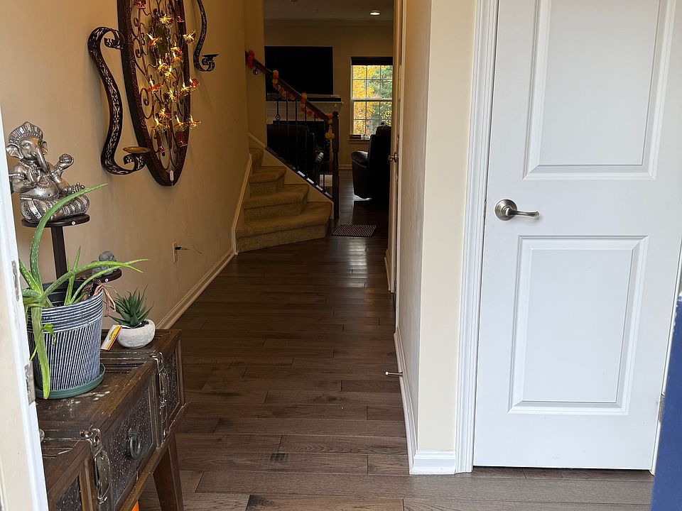 Upon entering this spacious townhome, you are greeted by hardwood flooring that runs throughout the main level back to the open, naturally-lit living, dining room, and kitchen. The kitchen features espresso cabinets, an island, granite counters, stainless steel appliances, and a pantry. The dining has a built-in serving bar & access to a huge deck. The upstairs has 3 bedrooms, 2 full baths, and the laundry room (washer/dryer included). The primary suite features a tray ceiling, walk-in closet, and an en suite that has a double vanity and a soaking tub. The remaining bedrooms share a full hall bath. The walk-out basement has large recreation room and one bedroom. There's also a luxuriously finished full bath with a granite vanity.