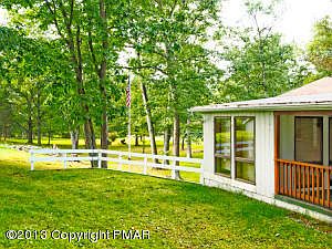 Sara Cramer Realty Executives 570-476-2424 office 570-476-1450 Sara direct www.SaraCramer.com Cute house with a lovely sun room which leads to an oversized deck overlooking an appealing vista. Living room bay window brick and wood accent wall built-in cabinetry. Basement and garage. $250 a year for water and road maintenance but not an HOA.