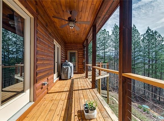 Peaceful & private, this immaculate custom log home is move in ready. Situated on 10.83 acres at the gateway to the Blue Ridge Mountains, it's close to Asheville, Charlotte & minutes from Lake Lure & TIEC. The main level features an open floor plan, spacious kitchen w/custom cabinets, granite countertops & walk in pantry. Soaring 26' tongue & groove ceilings, massive fireplace & a wall of thermal tinted windows create a light & airy feel. All bedrooms have doors to the expansive deck w/cable railing for unrestricted mountain views. Finished lower level has full bath, family room, computer niche & storage/craft/bonus room. This natural setting has potential for organic gardening & other sustainable efforts plus has a commons area w/ pond. Includes a 2 car garage, a 20X35 metal workshop w/200 amp power perfect for RV, boat, horse trailer storage. Home has a whole house generator. Priced below current appraisal ($545,000 - on file). See features list in documents.