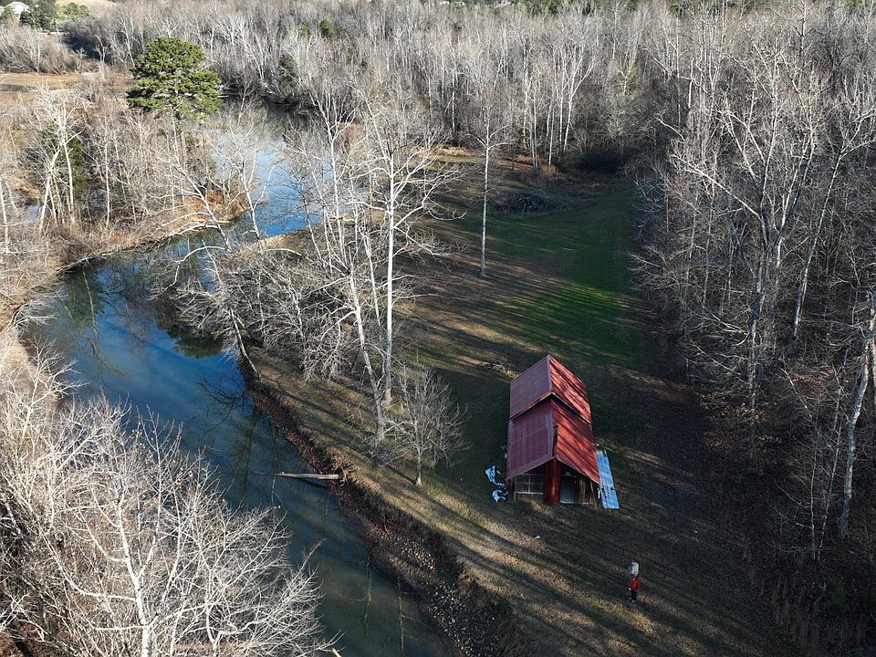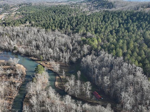 The property features approximately 3,300 feet of frontage along Goodfield Creek, with a hunter's cabin situated directly on the creek bank, making it ideal for weekend retreats or seasonal use. Elevated areas of the land offer breathtaking views of the Tennessee River, creating multiple potential building sites.