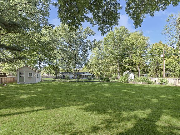 Don't miss this rare opportunity in Carmel - 4 bedroom, 2.5 bath ranch home with no HOA! You will fall in love with the amazing backyard with huge Trex deck with firepit, new fencing (fully fenced), and cute mini storage barn all set on a .43 acre lot with mature trees! The fully remodeled kitchen is a chef's delight with granite counter tops, gas cooktop, built-in oven/microwave, stainless appliances, pantry, and breakfast bar. Kitchen is open to the family room with a fireplace. Separate formal living room and dining room provide ample space for gatherings. Primary suite is spacious and boasts 2 walk-in closets and an updated bath with a full shower stall. New roof (2 years), new water softener (1 year), and new fence (1 year). 2 car garage. Fabulous location in Carmel School. Do not miss this one!
