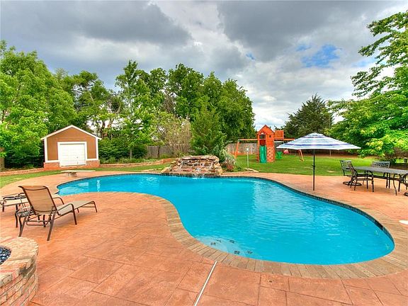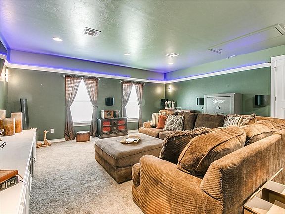 This beautiful 3 BR 2 BA home in the Edmond school district has it all!Inside AND out!A soaring cathedral ceiling invites you to gather in the huge living/dining room that features new hardwood flooring.The soundproofed,20 X 20 bonus room makes a great theater/ family room. Equipped with a wet bar, it