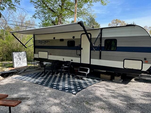 Table Rock Lake Vacation Home!! 2020 Camper with lot in popular Yogi Bear Jellystone Park! Corner lot, with wet-weather creek meandering through. This RV park offers public boat launch, swimming pool, tennis & basketball courts, and a clubhouse. Plenty of parking for boat and guests.