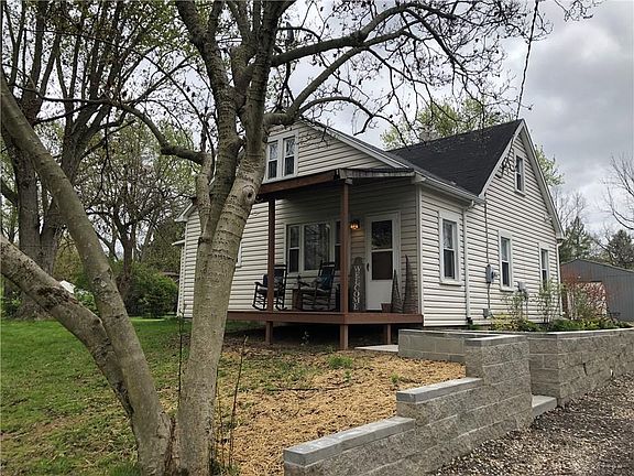 Adorable rustic home situated on 1.28 Acre welcomes you w/inviting covered deck. Newer laminate wood flooring & wood pine doors on main level. Nice open floor plan. Updated kitchen w/granite countertop & all stainless steel appliances (garbage disposal 1yr old). Large full bath remodeled 8 years ago. Main floor bedroom has sliding glass doors giving access to the recently stained rear deck. Two additional bedrooms w/newer carpet upstairs plus sitting area & storage. Enclosed rear porch is heated and has great views through the large windows. Two car detached garage w/newer opener & doors is heated with woodburning stove and has enough electric to hook up an air compressor. 40x30 POLE Barn w/concrete floor, has 11 foot door, 12 foot rafters. Also is heated with stove and capability to power a welder. Additional features include new piping from well to house 2 years, ability to plug in camper, large parking area, newer retaining wall & some concrete work plus a nicely landscaped yard.