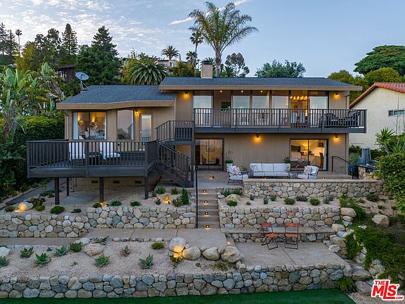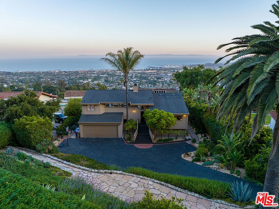 A picture-perfect home on the American Riviera, this impeccably remodeled Santa Barbara haven is a must-see! Step inside and immerse yourself in breathtaking ocean and harbor views that greet you at nearly every turn. With freshly painted neutral tones, designer wallpaper, and brand-new French oak flooring, every inch of the multi-level interior has been meticulously crafted. Serve your guests craft cocktails from the family room's marble-topped bar. Vaulted ceilings soar over the open-concept living room and dining area, anchored by a gorgeous fireplace with a raised quartzite hearth. Walls of expansive glass sliders allow a seamless flow for indoor-outdoor celebrations amid postcard vistas.Delight the avid cook with the gourmet kitchen's stainless steel appliances, handsome cabinetry, and quartz countertops. Wake up refreshed in the comfortable private retreats, the grandest of which is the primary suite with an exclusive lounging deck overlooking the water. The versatile lower-level bedroom features custom cabinetry and direct access to the patio. Head outside to discover multiple areas where you can soak up the sun and sea breezes. Engage in friendly competition on the Ecolawn sports court, sip a nightcap around the fire pit, or simply enjoy the solitude of the enchanting backyard. Additional inclusions are high-end window treatments and an attached 2-car garage.