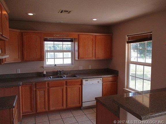 This house sits on a corner lot and offers a covered front porch, covered back porch, central entry, nice size living, kitchen with bar, split floor plan, master bed with trey ceiling, walk in closet and a private bath, new roof and new AC condenser.
