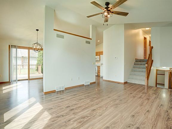 All showings start April 1st at 8am. This well kept 4 bedroom, 3 bath home sits on a cul-de-sac in an established neighborhood. Open floor plan with vaulted ceilings, walk in pantry, lower level work out/office, and a gas fireplace in the family room. Private backyard with privacy fence, 2 patios and a deck. The entire house is newly professionally repainted, brand new carpet throughout the house and new laminate wood flooring in the living and dining room. Other updates, new roof (2011), and new windows/sashes in 2012. Nice 12 foot deck for entertaining and central air. Large work bench in the garage and extra storage. Ready to move right in! Walking distance to Prairie Athletic Club, park and dining. A must see!
