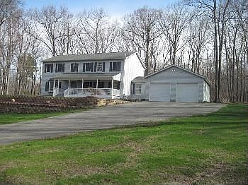 Lovely 4 Bedroom Colonial On 7 Acres With 3 Full Baths,Open Porch, Skylight, Central Air, Wood Burning Stove, Walk Out Basement, Hardwood floors throughout the entire house, 2 Car Garage. All Bdrms Have Double Closets, Master has Huge WIC. Kitchen Boasts Tile Backsplash and Tile Floors. SItting Room off of Kitchen w/Sliding Doors that Lead to Huge Deck Perfect for Entertaining. This Home Has to be Seen.