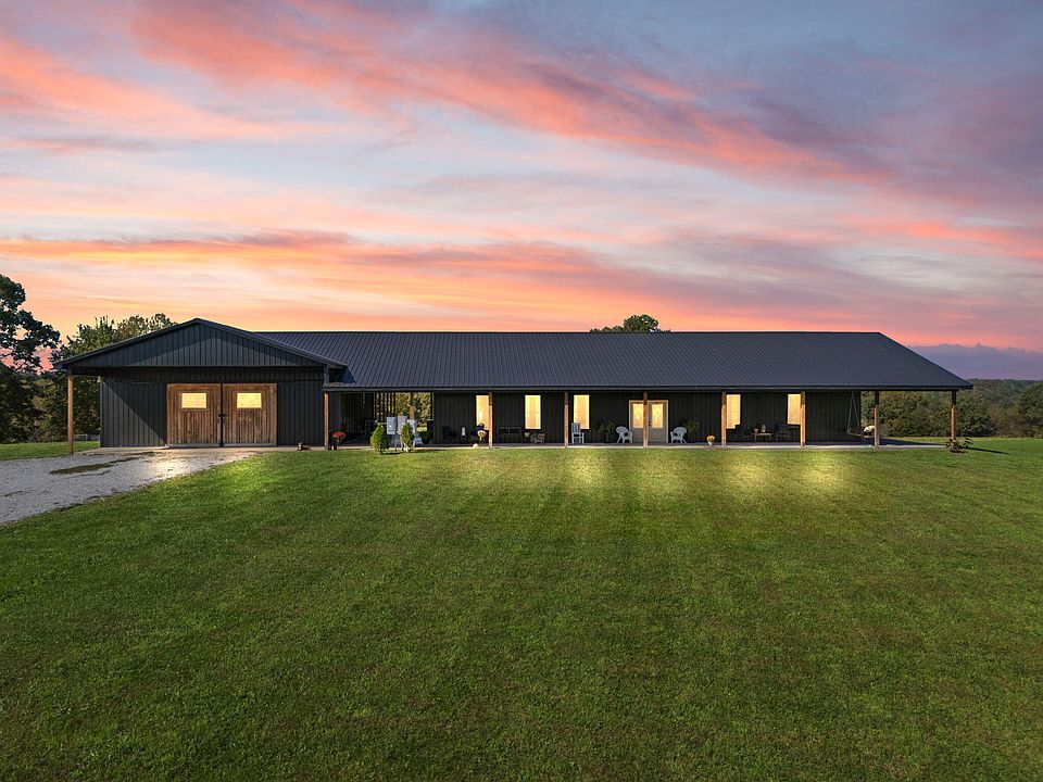 Welcome to Corner Oak Farm! Experience country elegance in this stunning barndominium featuring 2,100 sq ft of beautifully finished living space. With 4 spacious bedrooms and 2 full baths, this home is designed for both comfort and style. Three of the bedrooms offer direct access to a sprawling 2,650 sq ft wrap-around covered porch, perfect for morning coffee or evening gatherings where you can relax and unwind.