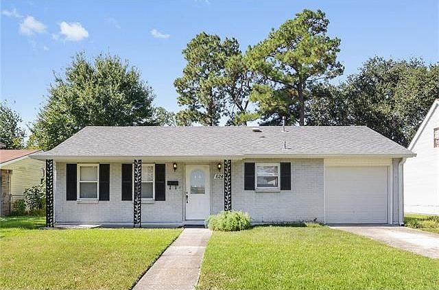 4 bedrooms 2 baths-ranch style home. About 1400 sq ft of living. One car garage. Double installed windows. Kitchen updated about 12 years ago. Kitchen is equipped with refrigerator. Nice back yard. Move in condition. Will go FHA or VA. Roof was put on after Katrina. No flooding.