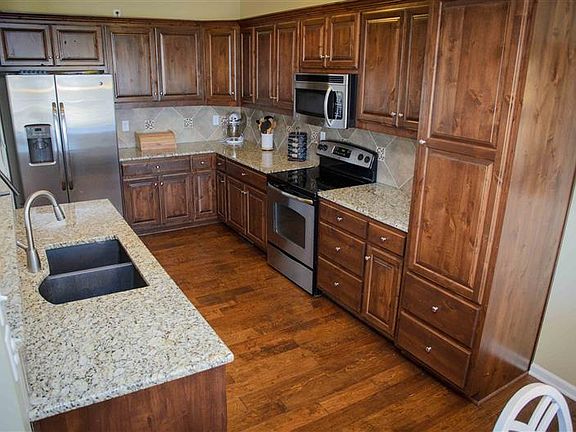 Four bedroom, Three Bath, Two Car Garage. This Home Features Stainless Appliances, Granite Counter Tops And Hardwood Floors. The Master Has Duel Sinks, His And Her Closets, Separate Shower And A Jetted Tub. Family room wired for surround sound and has Cat-6 wiring throughout. The lower level walk out storage room is large and perfect for a workshop and also has a storm shelter and storage room. Sprinkler system for the yard.