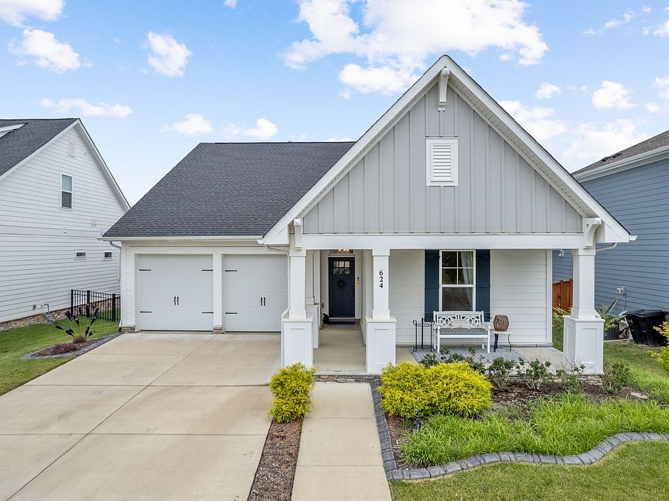 Incredibly maintained single level home in the highly desirable Durham Farms community! This cozy white home wrapped in prestigious stone faces a pocket park and is within walking distance to the Community Farmhouse. The community of Durham Farms offers pool, fitness facility, bistro and more. Special features include Bahama shutters on the back patio, gas line run for gas grill on back deck, additional cabinets in the laundry room, custom shelving, cabinets, and drawers in the huge master closet, EV Level 2 car charger in garage, and SO much more! At the end of the day, enjoy watching the sunset from your quaint front porch.