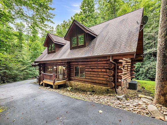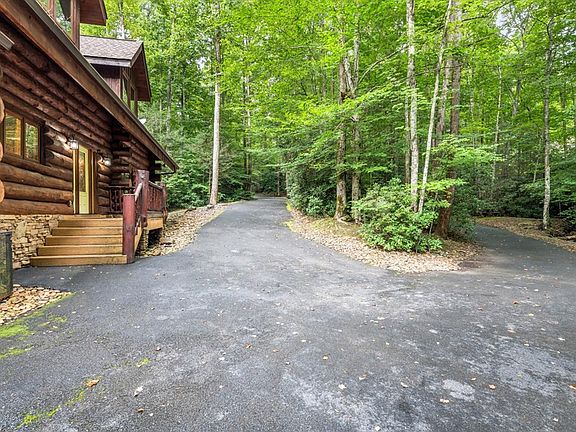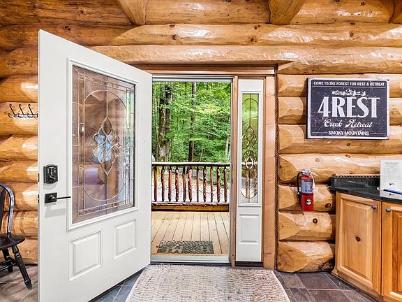 Luxury true log cabin with a creek running through the property! Check out the virtual tour! The cabin has a long history as a successful short-term rental. This peaceful, secluded log cabin sits on 1.94 acres behind a wrought iron security gate and is located within 20 minutes from Downtown Gatlinburg. Upon entering, you will find a large kitchen that is open to the dining area and living room. Your eyes are immediately drawn to the stone fireplace that stretches to the ceiling and the log beam walls. There are 2 king bedroom suites with attached full bathrooms, each with a walk-in shower. There is also an additional half bathroom on the main level. Directly off the dining area is access to the covered, outdoor entertainment area with an 8-person hot tub, picnic table and rocking chairs to enjoy the peaceful sound of the mountain stream. Up the log stairs is a game area with a pool table and 60 game multicade. Two queen sleeper sofa allow for extra sleeping locations. Behind the game area are two additional king bedroom suites with their private bathrooms. Outdoors you can explore the property, enjoy the fire pit or simply relax listening to the sounds of the creek.