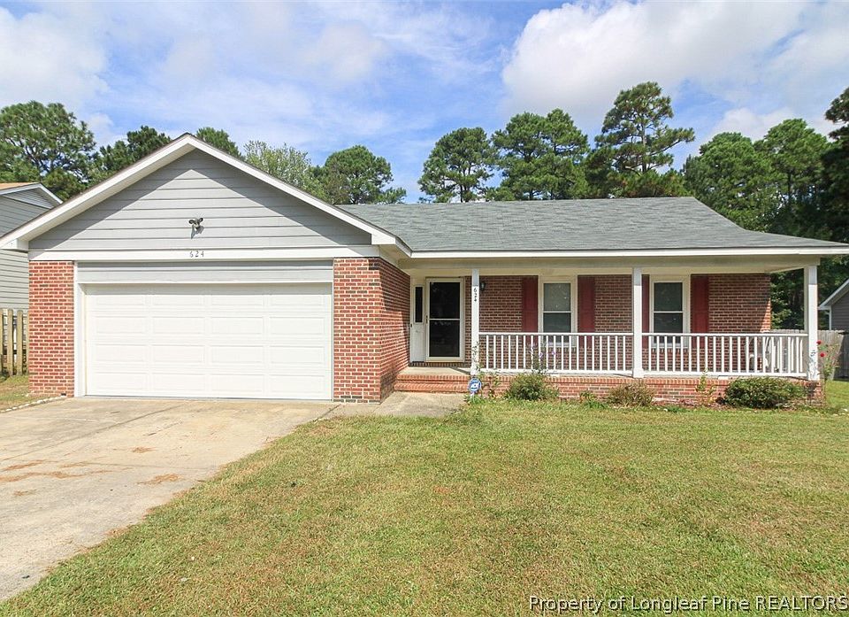 Perfect location! Just minutes to anywhere on Fort Bragg, Middle Creek subdivision is just off the new 295! Convenient to work, dining, shopping and if you are escaping town for the weekend it's a quick exit to head to the beach or wherever! This brick ranch is a spacious 3 bedroom 2 bath home with 2 car finished garage and newer garage door, good sized privacy fenced back yard with patio, perfect to set up the grill and a pool for entertaining. Home features corner stone fireplace a great covered front porch, spacious galley kitchen! Wooded area in back too! Roof replace appox 2018.