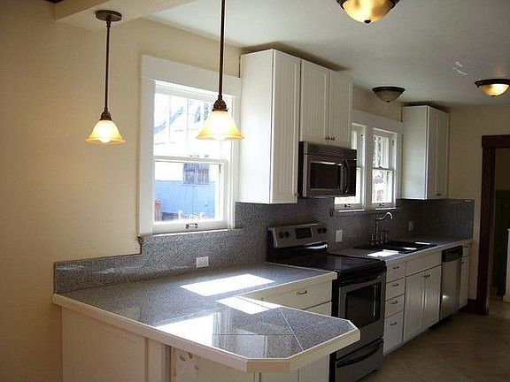 Remodeled with all the old charm. Lead glass windows/restored wood work. Remodeled with ALL THE TOP OF THE LINE-kitchen with new cabinets, breakfast bar, granie tile counters, stainless steel appliances, faucet, sink, fixtures, tile floor. Lg Living room with built-ins surrounding fireplace. Original hardwood floors, in Lr, DR and both bedrooms. Bathrooms remodeled with tile floors, tile surrounding tub/shower, resurfaced claw tub, new toilets, sinks, lighting. Bright basement with new carpet...