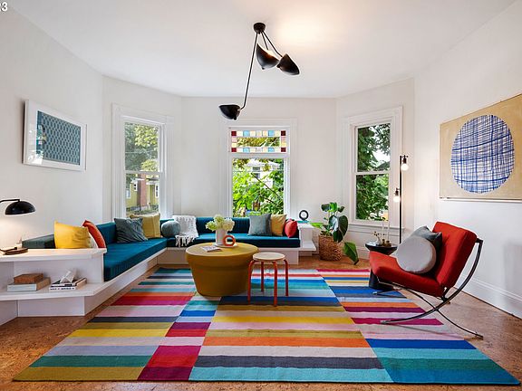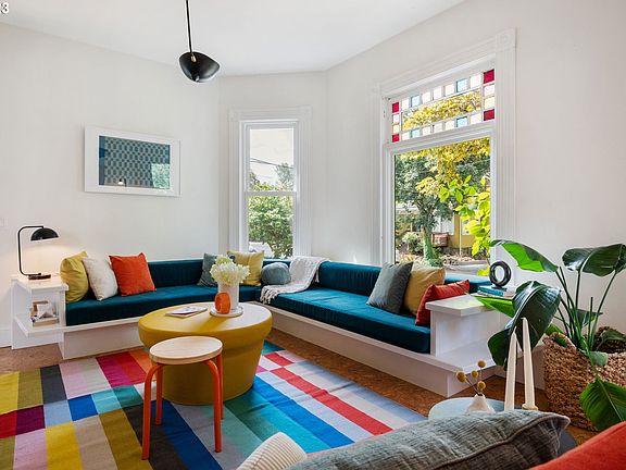 A synthesis of the past 126 years, charging boldly into the future, this colorfully adorned historic home shines with its original high ceilings and pocket doors, dressed in its contempo regalia ~ old and new intertwine, you get this charming Victorian with ergonomically friendly cork flooring & lots of high-end upgrades: custom cherry cabinets, a BlueStar range & fiberglass clad Marvin windows. Skip through this playful space and cuddle up on your custom cabinet style built-in sofa with Cush Upholstery velvet cushions with Crypton finish for a night in by the flickering light of the gas stove, or playing games under the glow of the Serge Mouille Spider Sconce inspired light fixture. Gather round the table in the spacious dining room or dine al fresco, and enjoy the delicacies prepped in your own gourmet kitchen with stainless steel appliances, Dekton Uyuni countertops and sky high Bedrosians Makoto Shoji tiled backsplash, or from the endless eateries lining the surrounding business districts- Belmont, Kerns, Hawthorne & more! Bundle up those leftovers for a picnic in Laurelhurst Park! This baby's got the floor plan you've been waiting for, with an entry hall, entertainers? sized living spaces, a powder room and direct access from the kitchen to the yard all on the main level. The nautical staircase leads you to a private, whimsical upper level complete with a primary bedroom with en suite bathroom, walk-in shower and soaking tub, two closets, and a vanity area plus two more darling bedrooms & a vintage styled hall bath. Ooh, heated floors in both bathrooms! Enjoy the peace and tranquility of your fenced yard encircling the garden space, deck, shed and patio with a gas fire pit to while away your evenings. With a workhorse of a basement for crafty projects, off street parking, a stellar location on a quiet residential block with prime walkability, years of loving care and a robust permit history, you cannot beat this singularly smashing abode. Offers due 10/2. [Home Energy Score = 2. HES Report at https://rpt.greenbuildingregistry.com/hes/OR10221004]