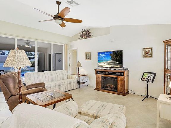 Move-in Ready pool home in desirable area of SW Cape Coral. This 3 bedroom, 2 bath home has tile floors throughout and an open floor plan with a wall of sliding doors for plenty of natural light. Large screened pool and lanai with southern exposure offers lounging in and out of the sun...the reason we love living in SW FL! Mature landscaping for curb appeal, manual shutters for windows and accordion shutters across the lanai for storm protection and fenced backyard for privacy adds to the overall appeal of this home. Being sold Turnkey with a few exclusions, all ready for the next home owner. New A/C system in 2018. All assessments Paid. Not in a flood zone.
