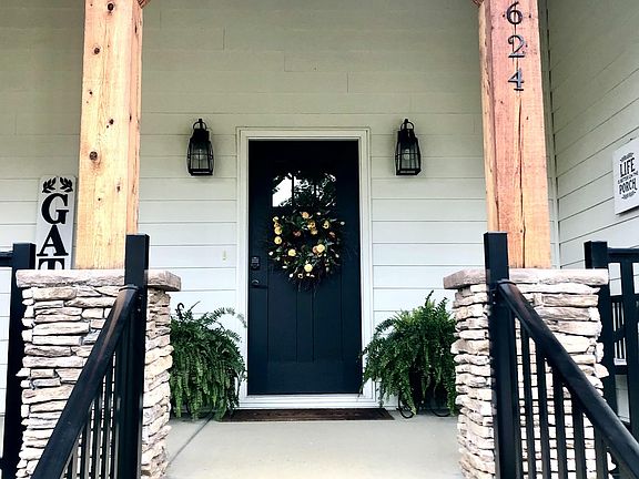 Rustic-Glam Farm House. Pro photos coming. Large Cedar beams frame out BOTH the front and back expansive covered porches all under a 50 year metal roof! Dreamy private back yard includes pet ready black fencing and lush landscaping that backs up to woods. Inside, relax by the stone fireplace or sit on the built in hand-milled cedar foyer bench. Sip coffee in the open, white, bright kitchen with SS appliances, granite counters, and luxury white gloss brick tile backsplash. Upstairs are three roomy bedrooms all with walk in closets and built in shelving. The primary bath features gorgeous barn-wood tile and black framed mirrors. Downstairs is the flex room to use for a private office, a 4th bedroom, play room etc. Updates and luxury details and finishes throughout this house. Ask your agent about the 48 hour Kick out clause or first right of refusal addendum in place on this house.