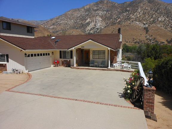 Located on the Kern River, this quality, one-owner home has a lovely sandy beach and lots of rock work on the shore line. Built in 1990 on almost 1/2 acre, the 80 foot wide lot being one of largest on the river, this home has 2 levels. The main level has 3 bedrooms, 2 bathrooms, a beautiful living room with T&G vaulted ceiling, brick f/p w/insert, a gourmet's kitchen with LOTS of granite counter space, beautiful cabinetry, pantry, and veggie sink. Master suite has His & Hers closets and door to deck. Downstairs is a large den with w/s set in a brick hearth, bedroom & bath, & a wall of cabinets. Another set of decking outside takes you a few steps to your own sandy beach & the Kern River. Perfect place for lounge chairs & a fire pit. Watch the stars at night reflect off the river! There is a workshop/basement on the side of the home. Room for RV parking on side of home and there are RV hookups including septic at front of home. Lovely brick accents, lots of concrete. Lovely.