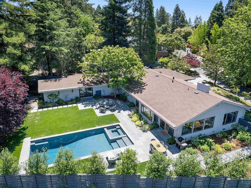 Embrace the coveted Lafayette lifestyle at 624 Sky Hy Circle, a turn-key four-bedroom, three-bath retreat designed for indoor-outdoor living in the exclusive gated Sky Hy Ranch community. Spanning 2,989 square feet, this bright and airy home blends indoor comforts with an entertainer's dream backyard paradise. Sliding glass doors seamlessly connect the open living areas to the stunning resort-inspired outdoor retreat. Built in 2021, the shimmering pool, soothing spa, and cozy fire pit beckon for laid-back pool parties or elegant al fresco gatherings on the expansive patio. Lush, mature landscaping surrounds the flat lawn, perfect for playful afternoons while the soothing fountain provides a tranquil ambiance. Inside, stylish and updated living spaces are bathed in natural light through picture windows. The multiple living spaces are ideal for entertaining, while the separate family/bonus room allows for cozy nights at home. Unwind in the serene primary suite featuring an oversized bathroom retreat. Throughout, discover fresh interiors with on-trend fixtures and finishes complemented by stunning hardwood floors.