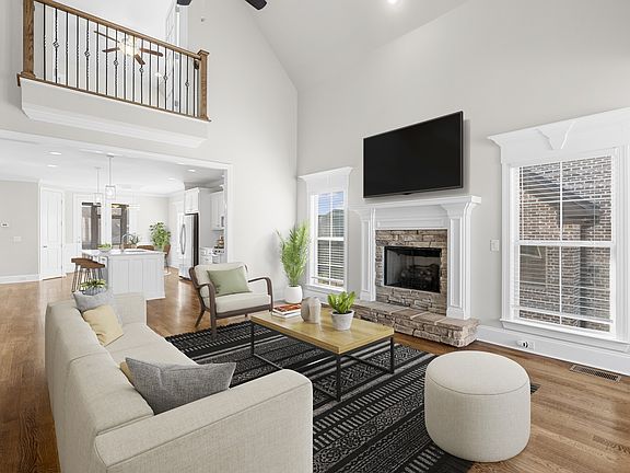1% credit for closing cost, and/or rate buy down if using preferred lender. Looking to move in with instant equity? This is your chance. Priced below market, 624 Southshore Point, is beautifully designed 4-bedroom, 3-bathroom home with an open floor plan and exceptional features. Step through double entry doors into the great room, where soaring ceilings, a gas fireplace, upgraded trim, and gleaming hardwood floors create a warm and inviting atmosphere. The main-level primary suite boasts a vaulted ceiling, ample closet space, and soothing paint colors, leading to a spa-like ensuite with a tiled walk-in shower and whirlpool tub—perfect for relaxation.