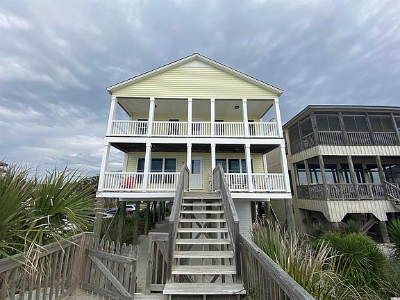 This Pawleys Island oceanfront home enjoys a recently re-nourished beach, beautiful sunrises, and a great vacation home floor plan. Whether your needs are full time, part-time, or as an income producing beach rental "4Hands" will be a great choice. First floor includes great room and huge dining area overlooking the Atlantic, the kitchen offers plenty of counter and storage space, and a full bath and a bedroom with balcony. Upstairs you will find four additional guest rooms, two baths, and a laundry room. Plenty of closets throughout and large enclosed storage underneath as well as parking. Great decks front and rear on each floor to absorb the sun and ocean breezes. Pier and deck over the dunes for seating and private access. Short drive to Pawleys creek, dining, shopping, numerous golf courses, and intra-coastal waterway access.