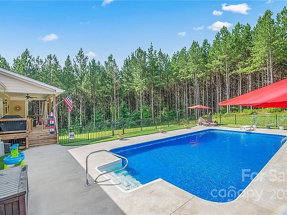 Beautiful, modern farmhouse style residence on very private 2.4 acre lot in The Ranches at Mountain Creek. Built in 2018, this home offers many upgraded features such as fiber cement siding, handscraped hardwood floors, stone countertops in kitchen & baths, & crown molding throughout the main living area. The spacious split bedroom layout features a vaulted ceiling primary suite w/lovely tile shower, dual walk-in closets & double bowl adult height vanity. Fantastic Jack-n-Jill bath arrangement dividing the two additional bedrooms and convenient mud room/laundry entrance off garage w/adjacent powder bath. Stylish L-shaped kitchen w/stacked uppers, tile backsplash & breakfast bar island. And while the interior is fabulous, there's no denying that one of the main highlights of this property is the sizable in-ground pool complete with diving board, wrought iron fence, & ample concrete deck area. So warm & welcoming - love the home & the pool!