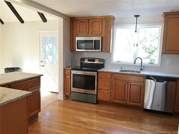Don't miss this opportunity to lease this lovely cape situated on beautiful half acre property! Move in ready! First floor offers bright newly updated kitchen w/granite & stainless appliances, open to vaulted dining room, classic living room w/fireplace, gorgeous family room with sliders to back + renovated bath and bedroom. Upper level features 2 spacious bedrooms. Gleaming hardwood floors throughout, new furnace and central air. Landlord requires Exc. credit & references. NO PETS. Beautiful lush lawn & grounds are maintained by the owner. All utilities are responsibility of tenant.