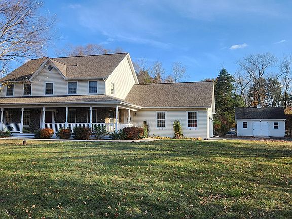 Stunning traditional colonial home nestled on 2+ acres of privacy and seclusion. Beautifully maintained and improved with updated kitchen and baths plus a newer roof. Spacious and airy with tons of natural light and gleaming hardwood floors, the first floor features the gorgeous chef's kitchen with center island, gas cooking, granite countertops, and breakfast area with bay window. Step down to the cozy attached family room with gas fireplace or the formal dining room offers a great place to entertain. The first floor office or living room offers a private space to work from home. The main floor also includes an updated half bath plus the conveniently located laundry room with outside exit. The second floor has four ample sized bedrooms and updated hall bath. The primary bedroom suite features an impressive bath with soaking tub and stall shower,upscale fixtures, custom cabinets, and tile floor. There is an attached walk-in closet with access to attic space that could easily be finished into a sitting room or huge additional closet. The lower level has a finished game room plus unfinished storage/workshop space. Outside there is an extensive patio area with a retractable awning, mature landscaping, koi pond, and pergola. Large detached shed offers additional storage or workshop space. Terrific location offers privacy yet is close to Routes 63, 73 and the turnpike. This beautiful home has been well cared for and updated leaving the new owner nothing to do but move in and enjoy!