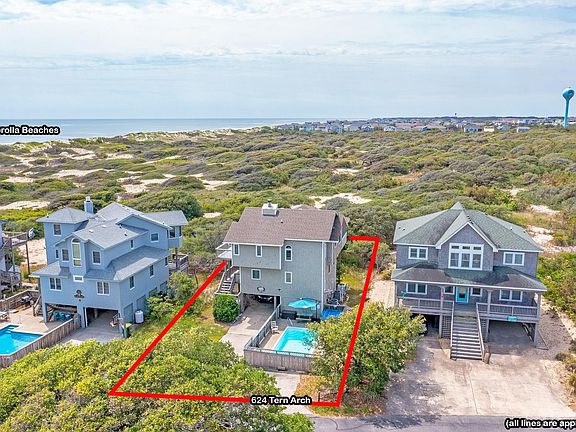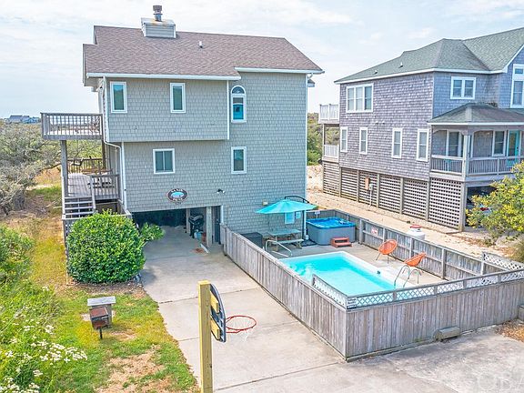 The undeveloped land behind this home makes for a beautiful setting, views, and a tranquil atmosphere. Being just 6 homes from the ocean front, this home offers your guests an easy walk to the beach and a lot of amenities - Private Pool, Hot Tub and a Jacuzzi room with windows looking out on the undeveloped Dunes behind the home! Enter the home from the carport and you will find a large storage room and a King MBR right on the first floor! On the second level, you will find a King MBR, a Duo Bunk Room, a Pyramid Bunk Room, and the Jacuzzi Room. On the top level, the home boasts a Queen MBR and a spacious, open floor plan with Kitchen, dining, living area, a Ship's Watch, and a screened porch. Take advantage of the spacious top deck to watch the sun rise and to gaze at the ocean view and undeveloped dunes behind the home. The mid-level deck provides for outdoor space out of the sun to relax and read a book. The home has been used as a permanent residence since purchased and is very nicely appointed. However, the home has been added to Village Realty's Rental Program for 2022 and will begin renting in July. You and your guests will be close to the Corolla bike path, Corolla Village for shopping, dining, and entertainment. Don't miss seeing this one!
